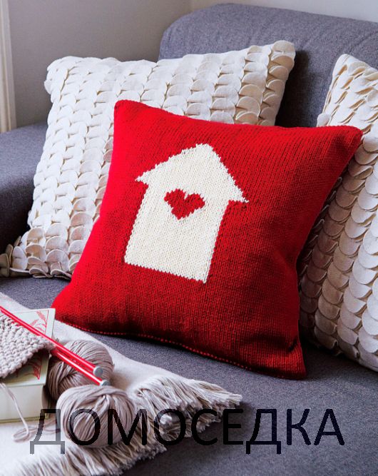 Подушка вязаная спицами