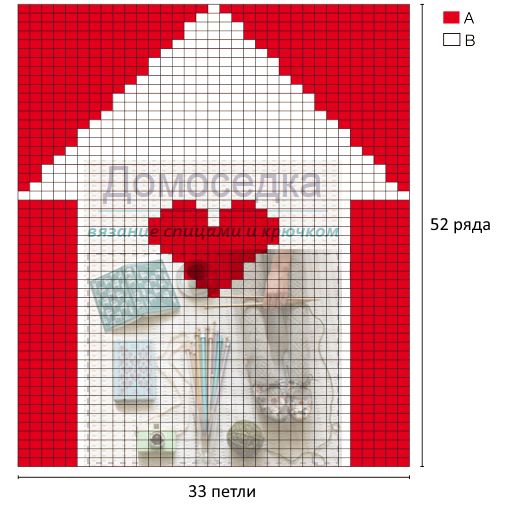 Для вязания рекомендуется: 5 мотков красного цвета (нить А) и 1 моток белого цвета (нить В) пряжи Debbie Bliss Сashmerino Aran (55% мериносовая шерсть, 33% микроволокно, 12% кашемир; 90 м/50 г); спицы 5 мм; 3 пуговицы.