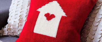 Симпатичная подушка вязаная спицами от дизайнеров Debbie Bliss - отличный подарок любимому ко дню Святого Валентина.