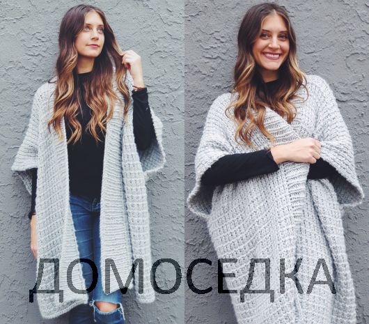 Вязаная накидка пончо от Two of Wands выполняется спицами единым полотном.