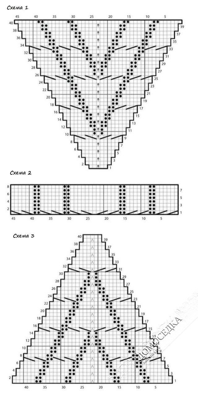 Далее вязать по схеме 1 с 1-го по 40-й ряд (= 45 п. в итоге).