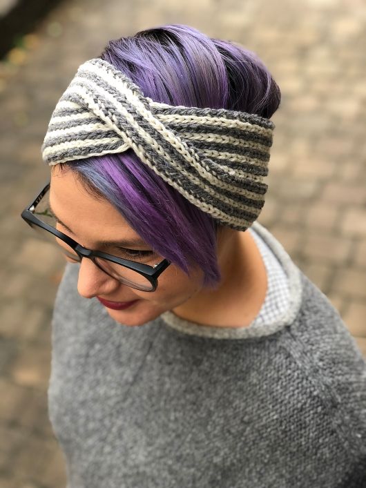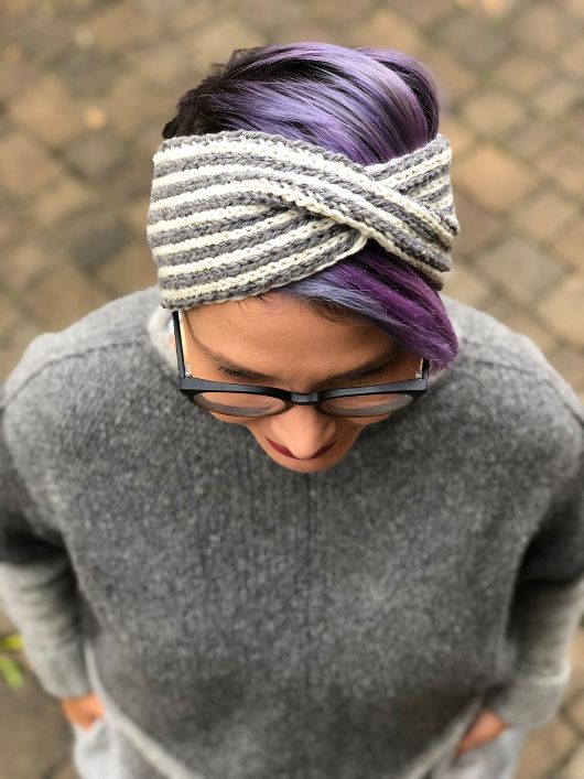 Повязка на голову - это недооцененный аксессуар, который сохраняет тепло на ушах и не дает волосам развеваться на ветру. Повязка легко помещается в любую сумку, если вы захотите снять её. TurbanTwist простая двусторонняя повязка с яркими полосками с одной стороны и двухцветной текстурой с другой благодаря резинке узору бриошь. Перекрученная резинка в центре, добавляет некоторый интерес и гарантирует, что широкое оголовье не съедет на ваш лоб.