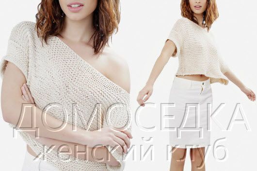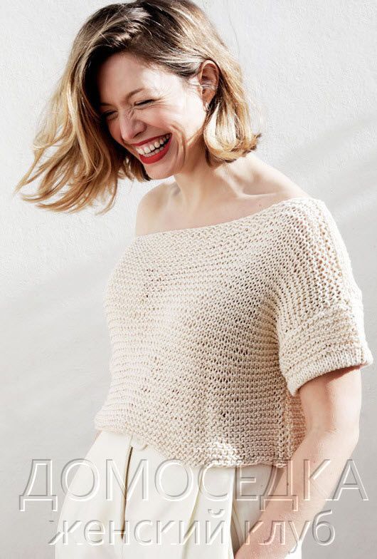 Простой летний короткий топ Florence выполняется спицами свободной платочной вязкой (для начинающих).