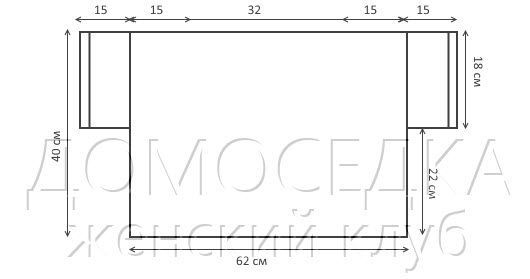 Выполнить плечевые швы по 15 см с каждой стороны. Пришить рукава вдоль боковых сторон. Выполнить боковые швы и швы рукавов. Подшить нижние края рукавов на 3 см.