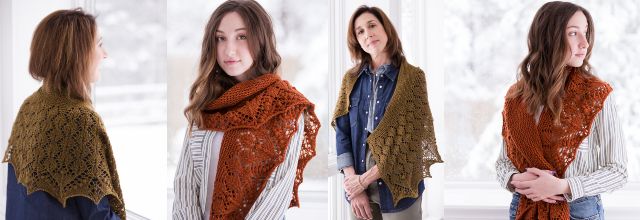 Вязаная шаль из двух мотков пряжи Loft или вязаный узкий шарф в форме полумесяца из 4 мотков пряжи Shelter, выполнены по одному искусному описанию. Оба варианта начинаются с наборного края от горловины и сегмента платочной вязкой, связанного укороченными рядами для придания изогнутой формы. Традиционный дизайн Эстонских листьев переходит в ажурные фестоны украшенные шишечками. Вязание этих мотивов более толстой пряжей придает им современный вид и приятную рустикальную текстуру. Выберите натуральный природный оттенок, чтобы подчеркнуть органические формы RAKKE.
