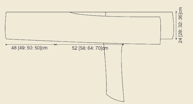 Правая сторона переда вяжется так же как левая сторона спинки до **. Продолжить правую сторону переда пока она не составит 140 (144, 148, 151) см. Закончить изнаночным рядом и в след. ряду закрыть петли.