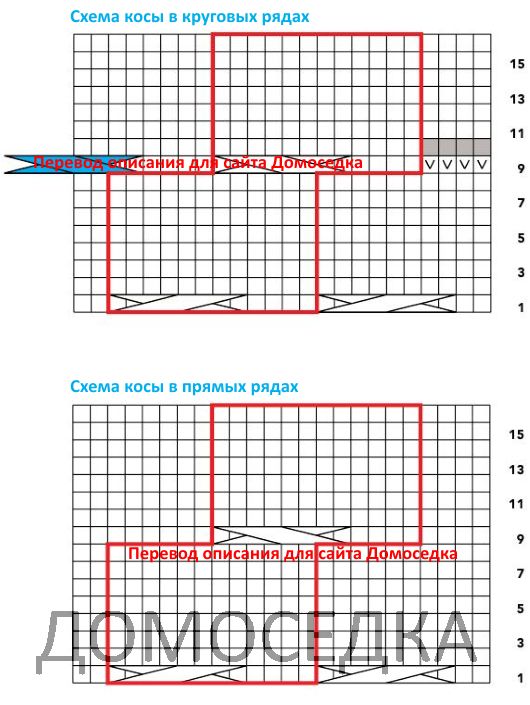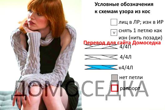 Плотность вязания: 36 петель и 37 рядов = 10 см узором из кос.