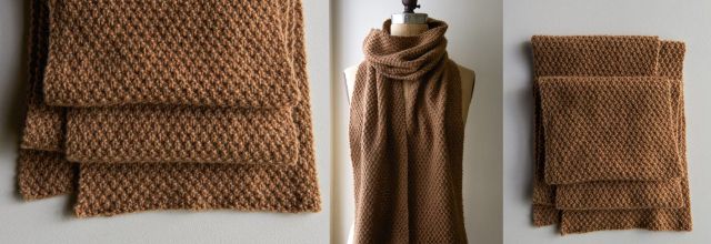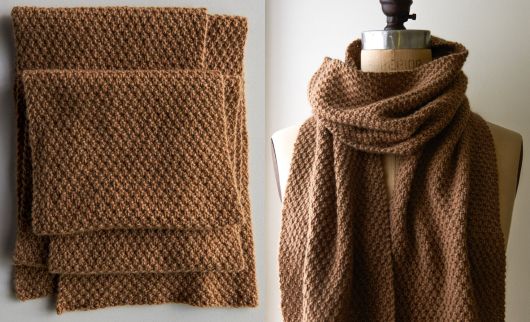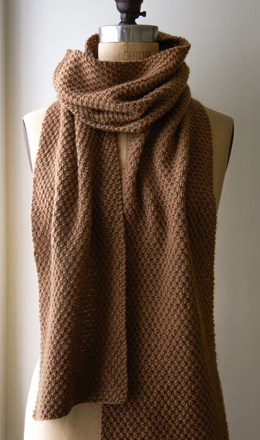 Простой длинный шарф вязаный спицами узором двойной рис.