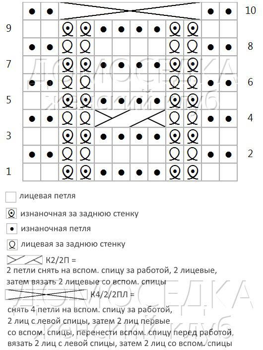 В узоре 12 петель и 10 рядов.