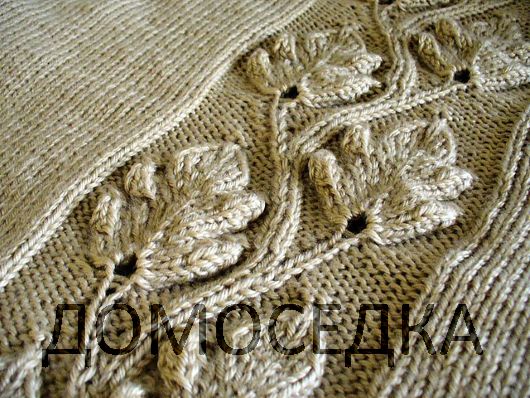 Замечательный вязаный шраг выполнен спицами лицевой гладью и украшен по всей длине спинки красивым узором Дубовые листья.