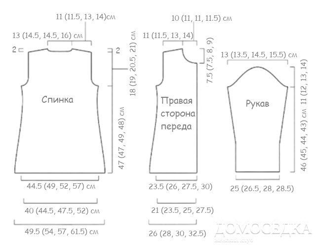 Далее вязать прямо, пока высота спинки не составит 47 (47, 48, 48) см. Закончить в изнаночном ряду.