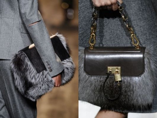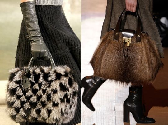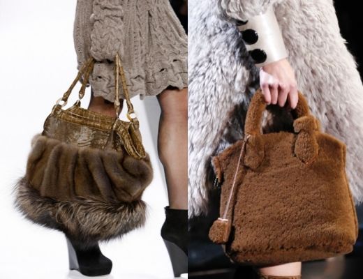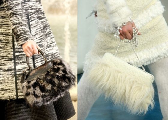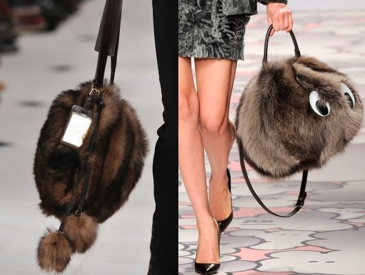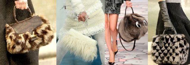 Этой зимой самыми модными будут сумки из натурального меха или, в крайнем случае, с меховой отделкой. Размеры разнообразные - от малюсеньких до огромных. Мех используется в самых неожиданных вариациях и цветовых решениях. Формы - от классических, до спортивных.