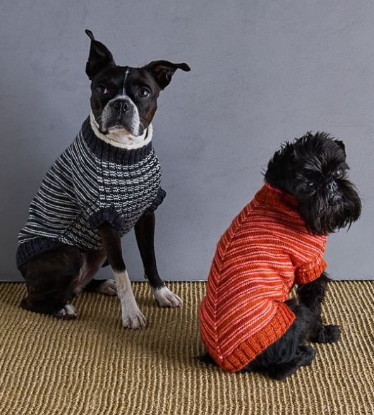 Вязаный свитер для собаки Pinstripe. Вязание начинается в направлении от хвоста, сначала прямо , если вяжете мужской вариант, затем соединяете в круг для вязания тела, или сразу начинаете вязать вкруговую для женского варианта.