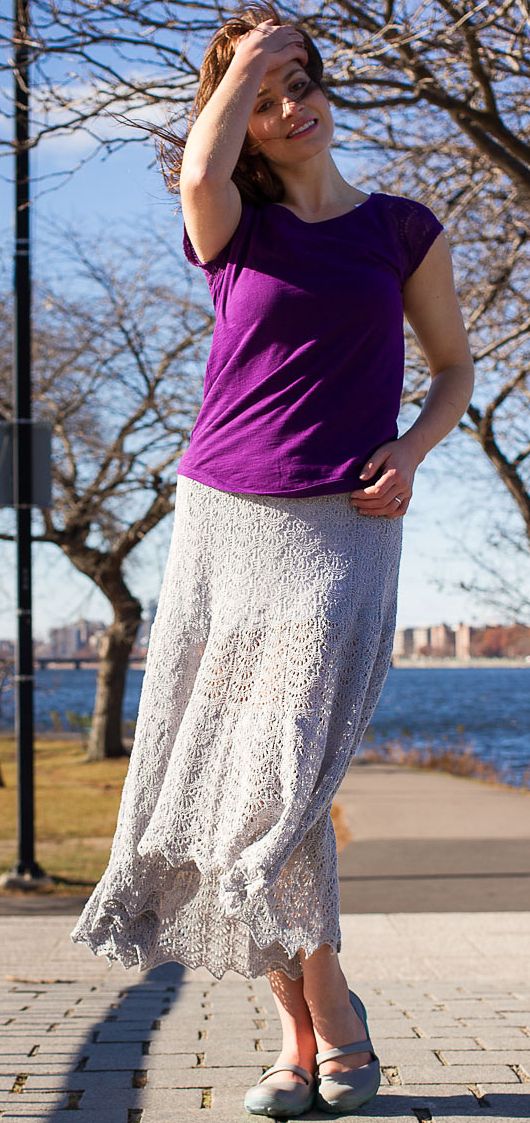 Ажурная многоярусная связанная спицами юбка Tanana в стиле кантри с удлиненным подолом.