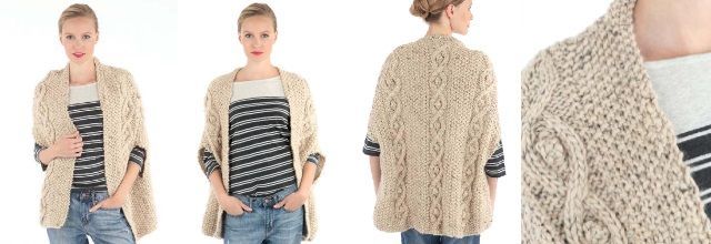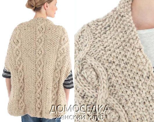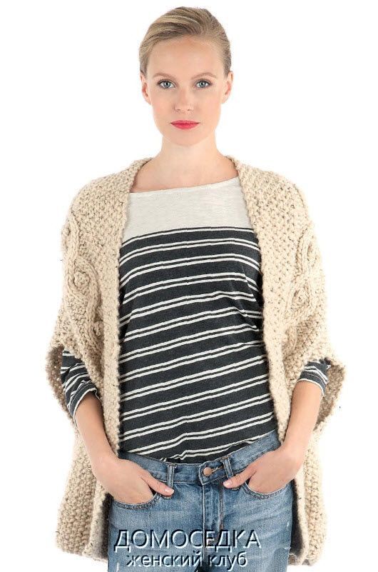 Теплая вязаная безрукавка от Sian Brown выполняется спицами из объемной пряжи.
