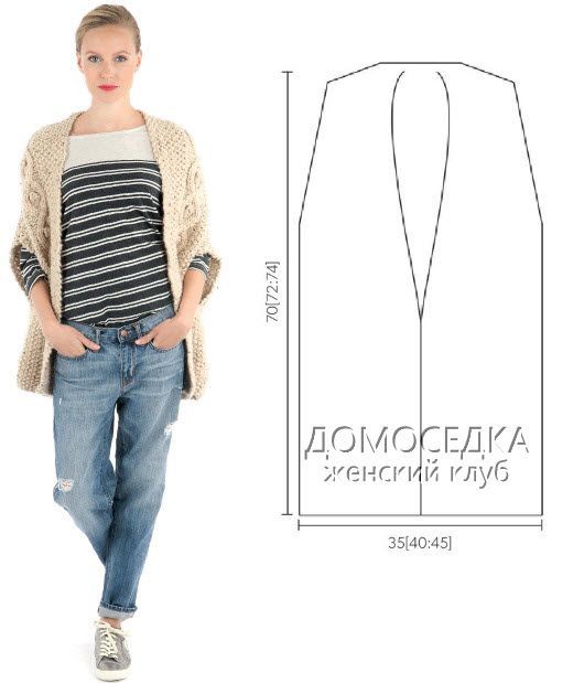 Плотность вязания: 9 петель и 12 рядов = 10 см лицевой гладью спицами 10 мм.