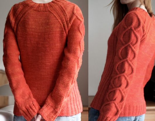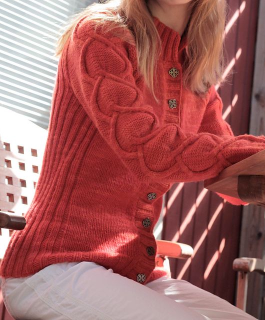 Теплая вязаная кофта Villane, полочки и спинка которой вяжутся единым полотном без боковых швов. Рукава выполняются по кругу носочными или круговыми спицами узором из кабелей.