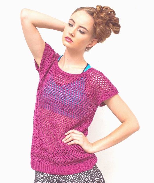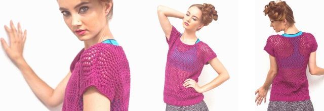 Летний вязаный топ от Emily Ringelman выполняется спицами узором Сетка зигзаг.