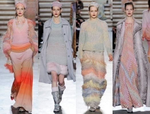 Законодателем моды на стильную вязаную одежду для женщин считается бренд Missoni, который и в этом сезоне порадовал своих поклонниц. Вязаные платья в нежной цветовой палитре розового, лилового, сиреневого и персикового оттенка, можно носить как вечерние.