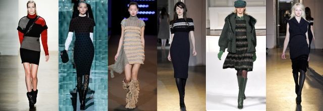 Модели нынешнего сезона полностью отвечают требованиям моды, которая давно провозгласила своей основной ценностью все натуральное, потому платья выполнены преимущественно из шерстяной пряжи с эффектом ручного вязания.
