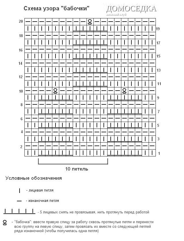 Симпатичный узор бабочки спицами вяжется очень просто.