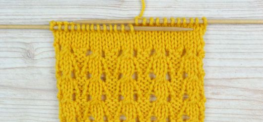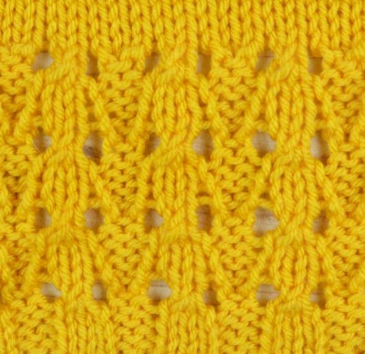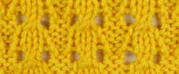 Простой узор с накидами вяжется спицами. Количество петель в узоре кратно 5.