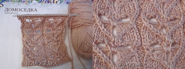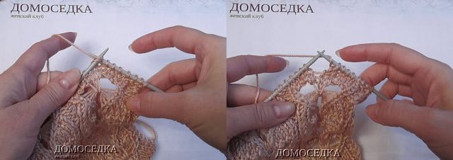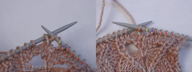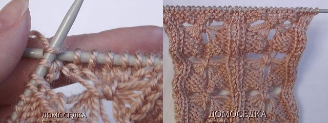 6. в следующем лицевом ряду образуется уже 3 накида, которые также нужно снять; продолжать узор по схеме...