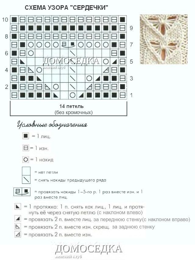 Узор сердечки спицами