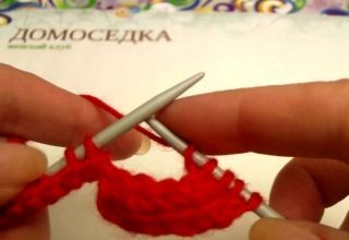 Первая перемычка (лицевая сторона): кром., 3 лиц. (в работе 4 петли), остальные петли ряда не вязать. Повернуть работу на изнаночную сторону и вязать на этих 4 петлях еще 7 р. лицевой гладью (последний ряд изнаночный).