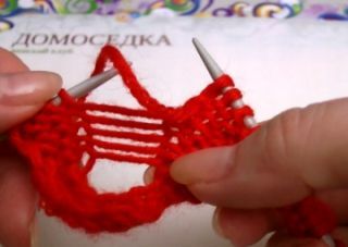 1-я и 2-я перемычки: в работе находятся 9 п., вязать на них лицевой гладью 6 р. (последний ряд изнаночный).