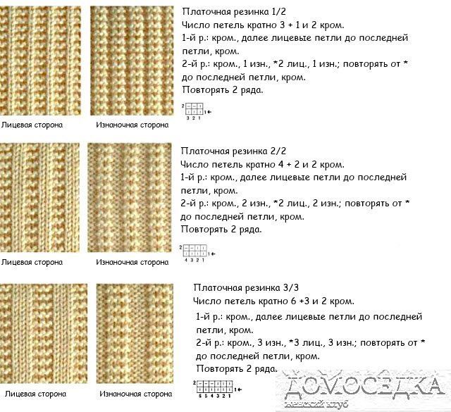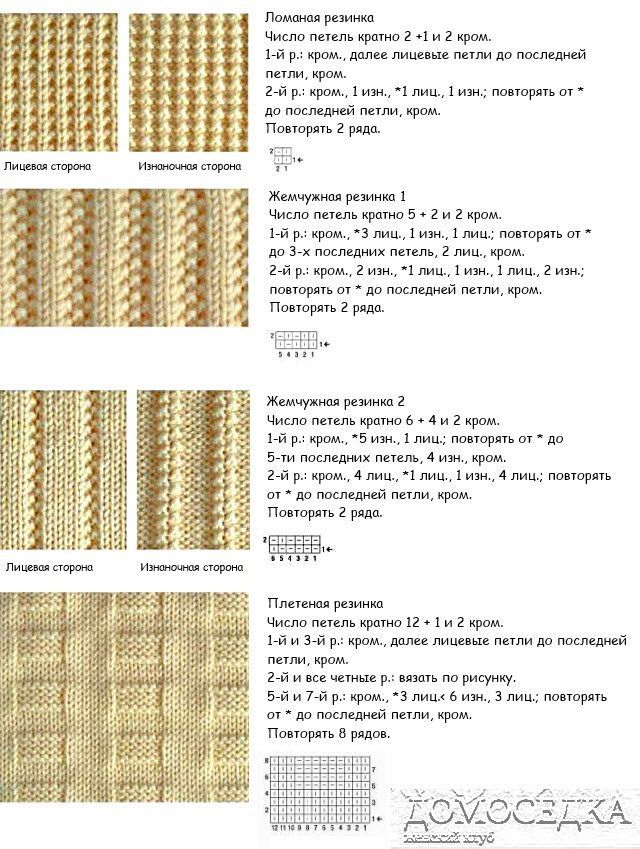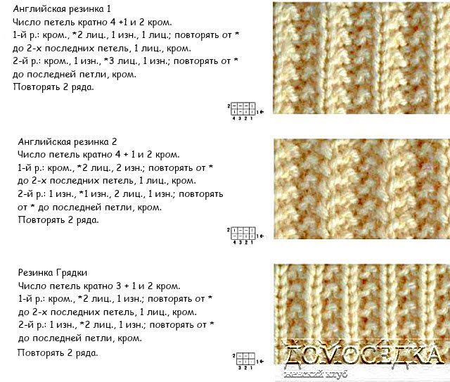 Узоры резинки вязание спицами. Коллекция из восемнадцати резинок на любой вкус.
