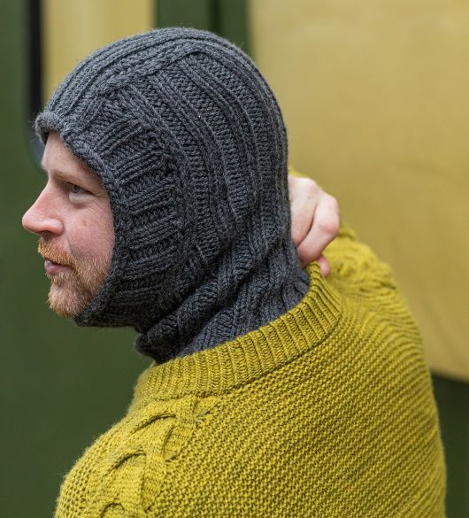 Вязаная балаклава Cargo - уютная зимняя вещь вяжется одним из толстой шерсти. Начинается с набора петель горловины и вязания резинки 2x2. Затем петли закрываются для выреза лица, после чего выполняются убавки для сужения полотна по бокам лица. Резинка вяжется прямыми рядами, а затем центральная часть спинки продолжается поверх головы, формируя бесшовную форму с капюшоном. Заключительная планка из резинки с закрытием петель методом I-cord обрамляет лицо.