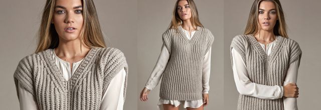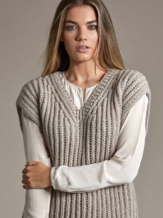 Вязаная спицами женская безрукавка Frozen с острым вырезом горловины. Безрукавка полностью связана из объемной пряжи классической английской резинкой с петлями, поднятыми из нижележащего ряда. За счет слегка удлиненного силуэта такая безрукавка выгодно подчеркивает достоинства фигуры. Спинка и перед безрукавки вяжутся раздельно снизу вверх прямыми и обратными рядами, а затем сшиваются вместе.