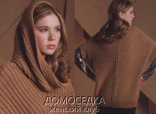 Свободная вязаная безрукавка с воротником от Lily Chin выполняется спицами диагональной резинкой.