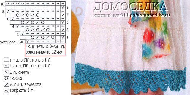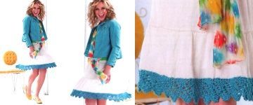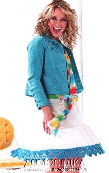 Декоративная ажурная вязаная кайма для юбки выполнена спицами.