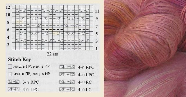 Набрать 22 п. и вязать узором по схеме. Повторить 12 рядов узора 18 (19, 20) раз. Закрыть петли.