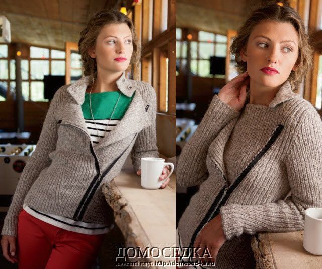 Вязаная кофта на молнии в спортивном стиле от Ahley Rao выполнен спицами.