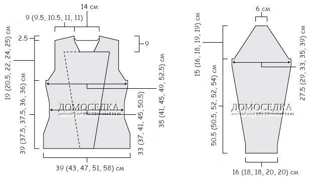 Перенести 20 (22, 24, 26, 26) п. для правого плеча на держатель = 20 (22, 24, 26, 26) п. для левого плеча.