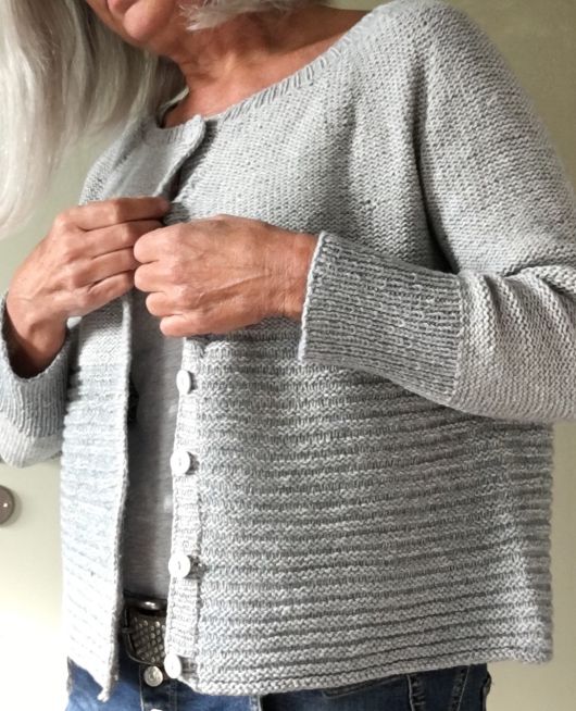 Вязаная кофта спицами Dolly от Regina Moessmer выполняется спицами сверху вниз.