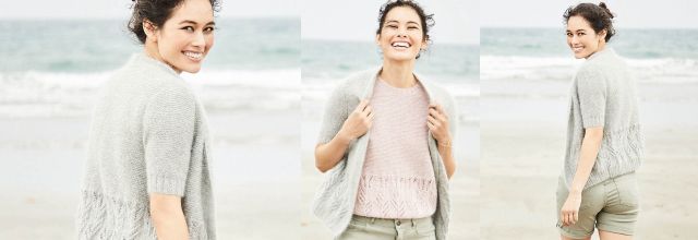 Простая летняя вязаная кофточка Jack с короткими рукавами выглядит нежно и элегантно благодаря роскошному ажурному узору из цветов и листьев. Полочки, рукава и спинка вяжутся раздельно поворотными рядами снизу вверх, а затем сшиваются вместе.