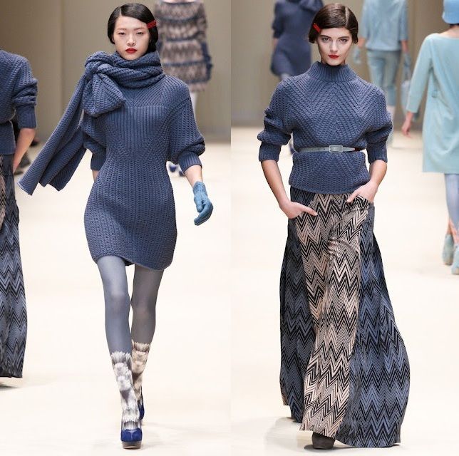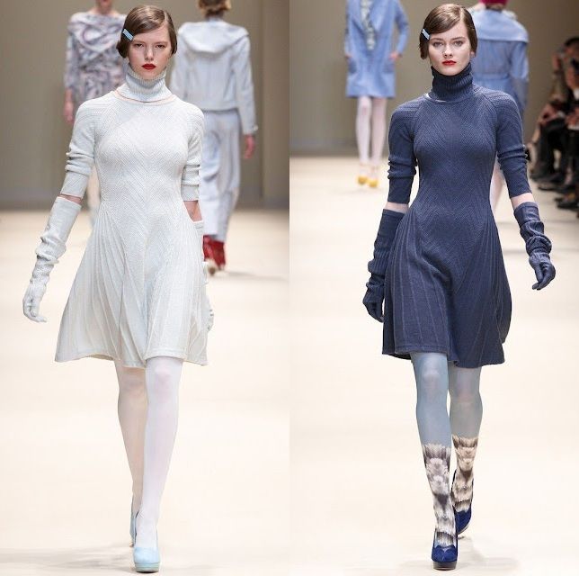 В моду прочно вошли вязаные платья. Модный дом Cacharel продемонстрировал очень красивые модели в сине-белой гамме.
