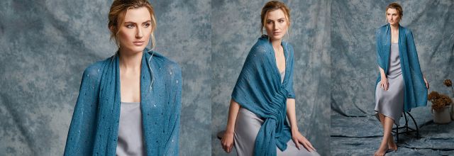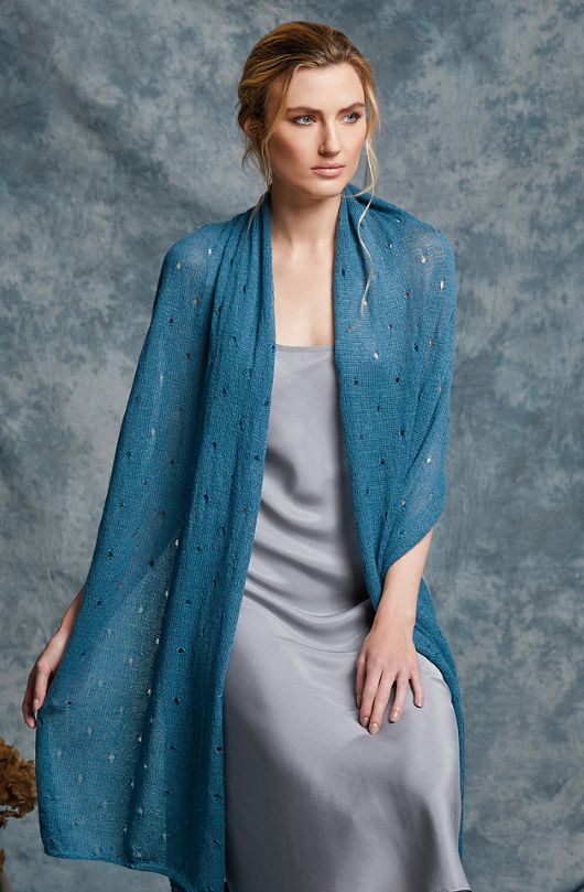 Вязаная спицами из тонкой пряжи женская накидка Kale прямоугольной формы с оригинальным элементом-кулиской, которая удерживает накидку в обернутом вокруг тела виде. Благодаря такому интересному решению этот классический аксессуар с нежным ажурным узором приобретет современный вид и станет прекрасным дополнением, завершающим ваш стильный образ.