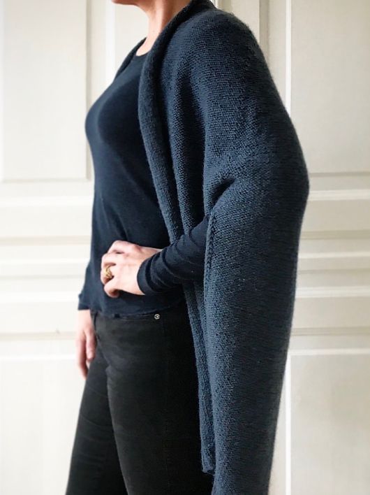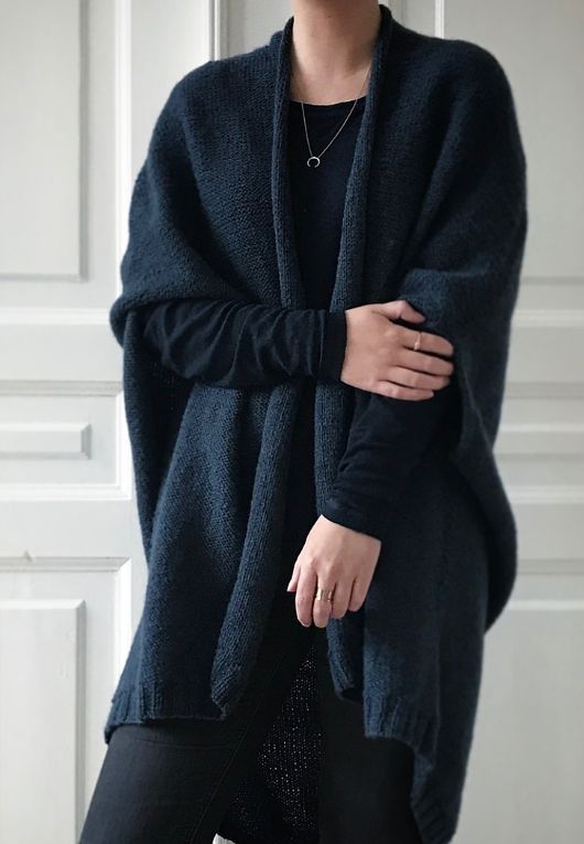 SJÆL – это замечательная вязаная спицами накидка-кардиган свободного кроя, которая одинаково легко вяжется и с лицевой, и с изнаночной стороны. Изделие можно носить не только как легкую повседневную одежду, но и для того, чтобы уютно устроиться на диване с Вашим любимым вязанием.