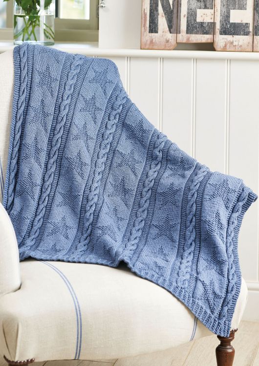 Универсальная вязаная накидка Stardust – уютная классика и стильный атрибут для вас и вашего дома. Большой палантин, плед или уютное покрывальце для ребенка? Будь то для домашнего обихода или малышам, но столько тепла и комфорта ничто другое не приносит. Эта накидка выполнена в традициях норвежского вязания узором со звездами и косами из перекрещенных петель на фоне платочной вязки, а ее края отделаны резинкой.
