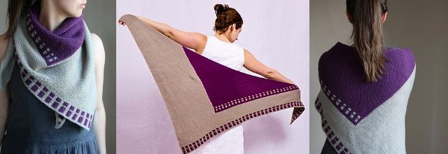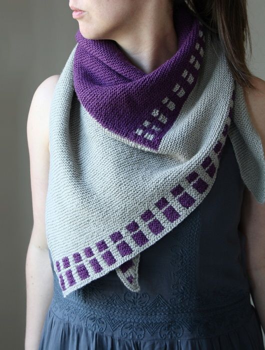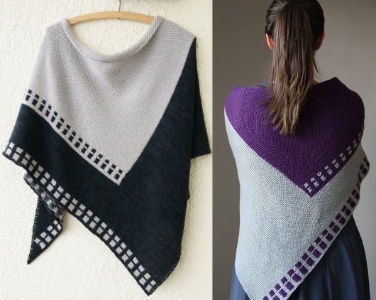 Marelle - асимметричная треугольная шаль, вязаная сверху вниз по косой. Форма шали образуется путем вязания убавок и прибавок в начале и конце рядов.