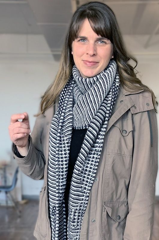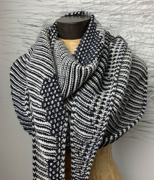 Вязаная шаль Norwalk выполняется от кончика до кончика. Она двусторонняя и имеет 4-рядный узор с простым волнистым узором косичек. С лицевой стороны петли косичек создают сетчатую структуру. На изнаночной стороне петли косичек создают узор в виде звериных клыков. Шаль полностью отделана по краю полым шнуром «i-cord», который формируется по обоим краям.