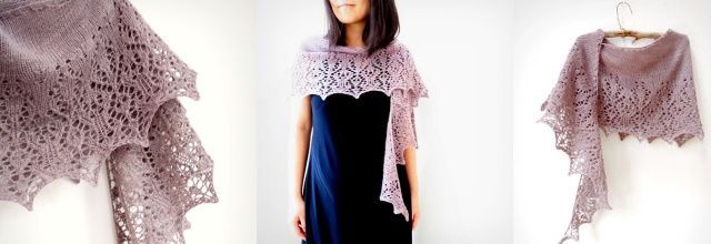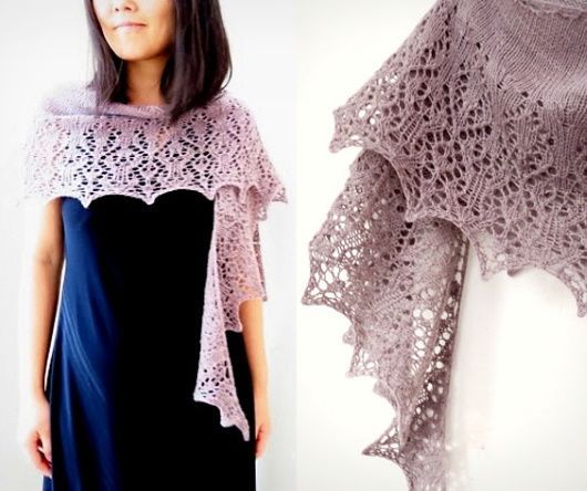 Вязаная шаль RememberApril серповидной формы с красивой ажурной каймой. Шаль вяжется от верхнего края вниз, начиная с лицевой глади, за которым следует 46 рядов ажурной каймы.