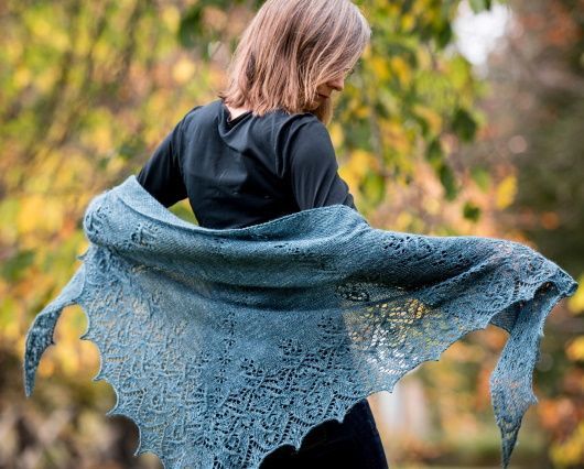Ribbonwood - это треугольная шаль с моим любимым ажурным мотивом и косичками. Одна итерация этого мотива продвигается вниз по каждой половине шали, затем вырастает в три и, наконец, расширяется в полную косичек ажурную кайму. Маленький, похожий на цветок мотив, снова подхватывается на самом краю шали и связывает все вместе в феерию ажурных косичек.