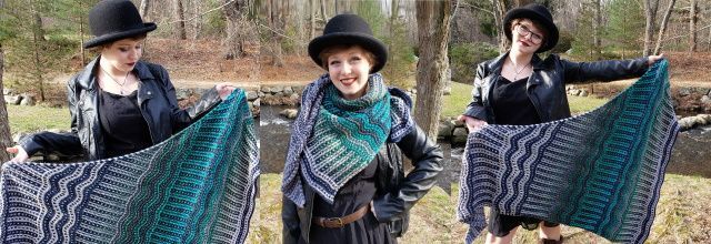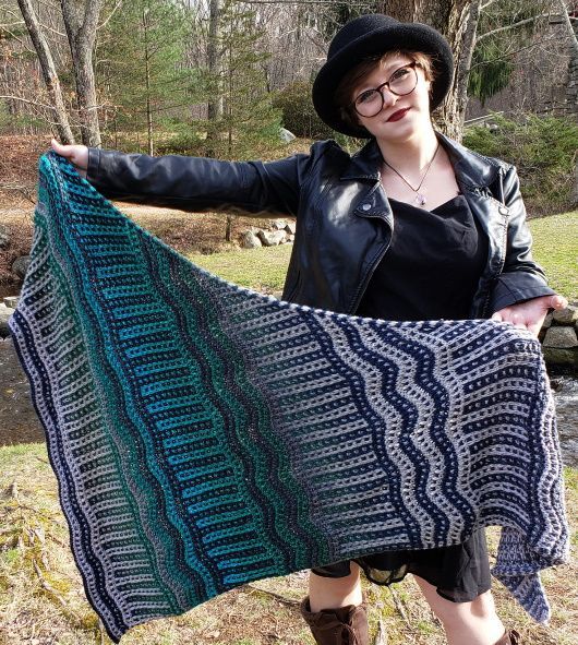 Асимметричная вязаная шаль StollenClouds выполняется комбинированным узором.