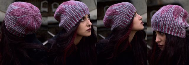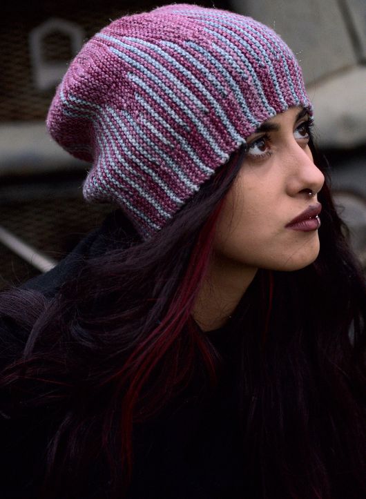 Модная вязаная шапка Equalised выполняется платочным узором в особой технике.
